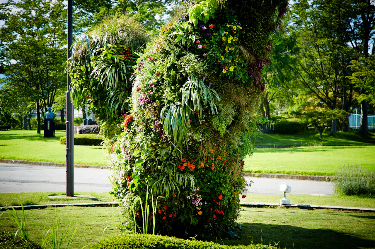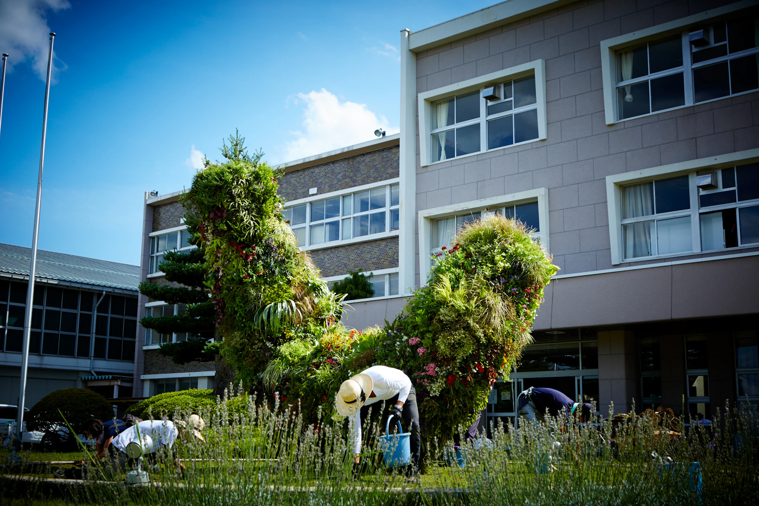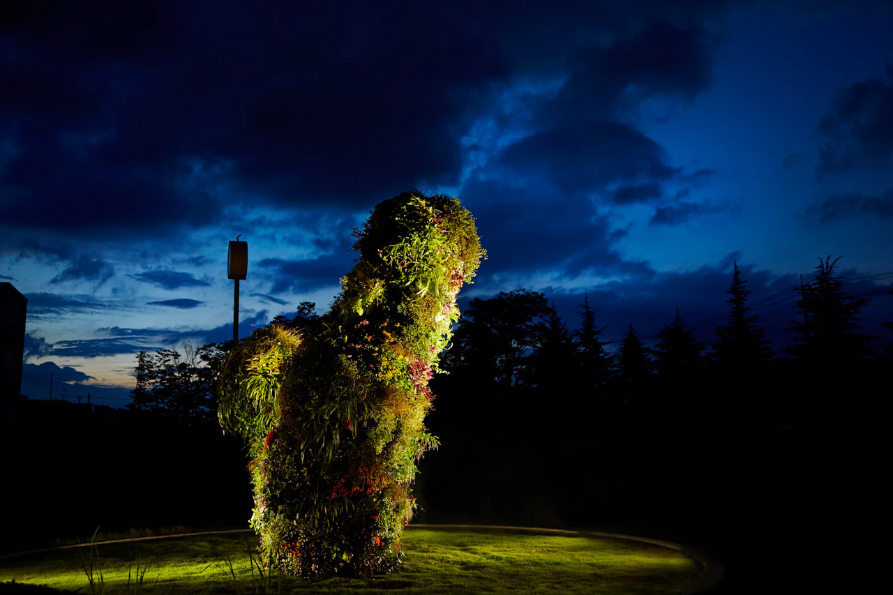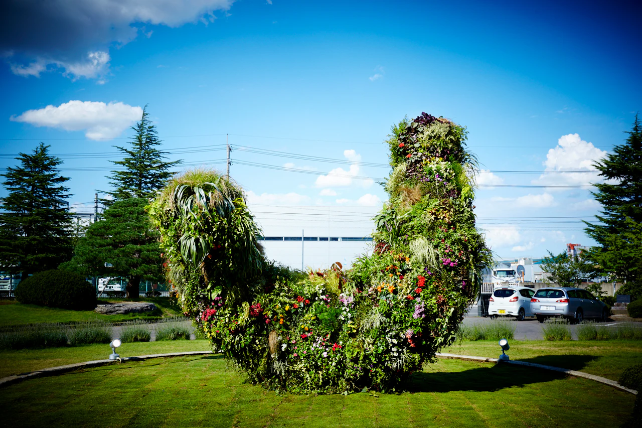 This botanical sculpture was created as part of a project led by Azuma, involving high-school horticulture students from Fukushima.