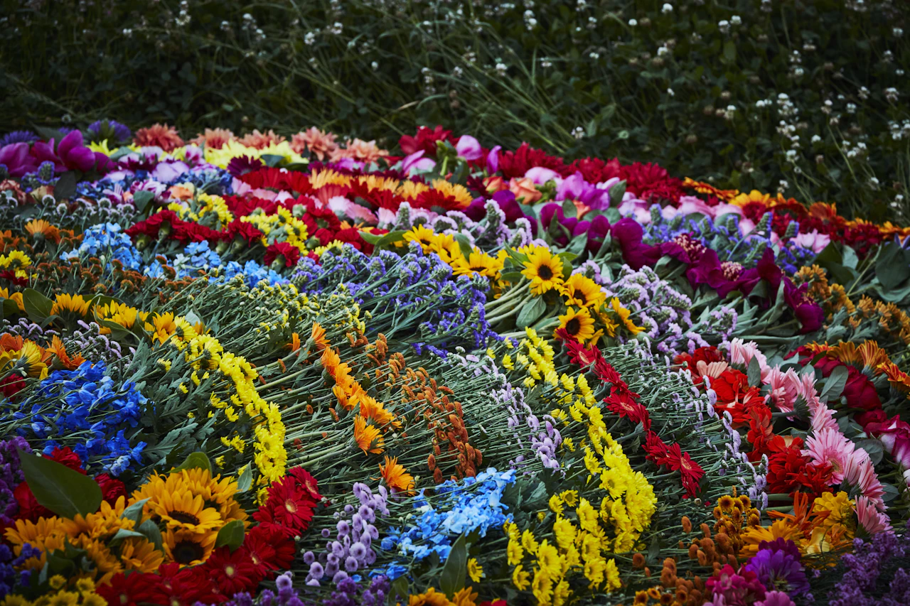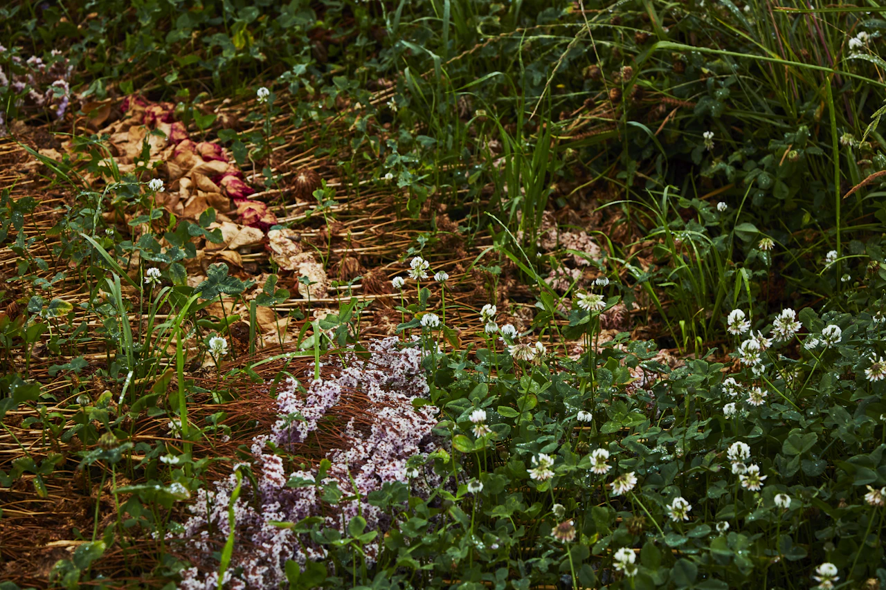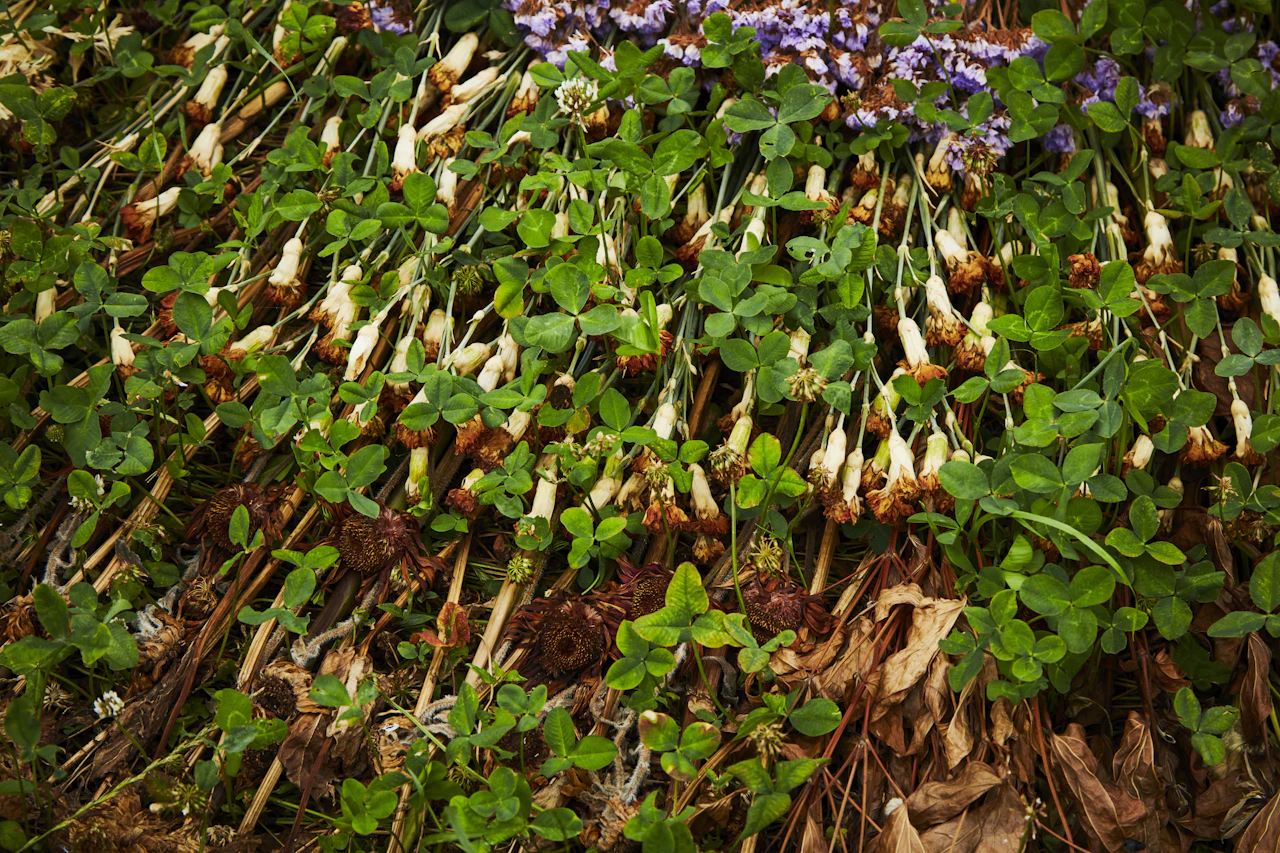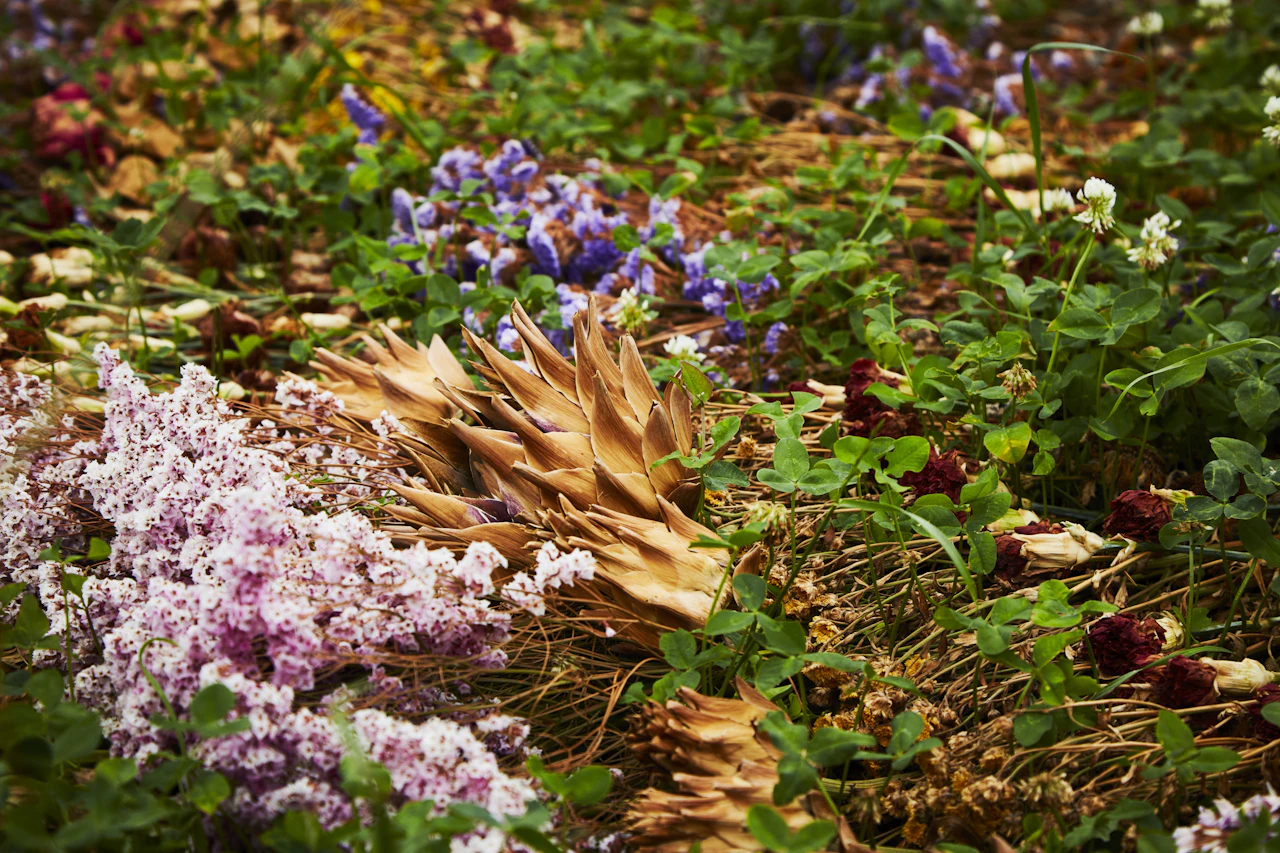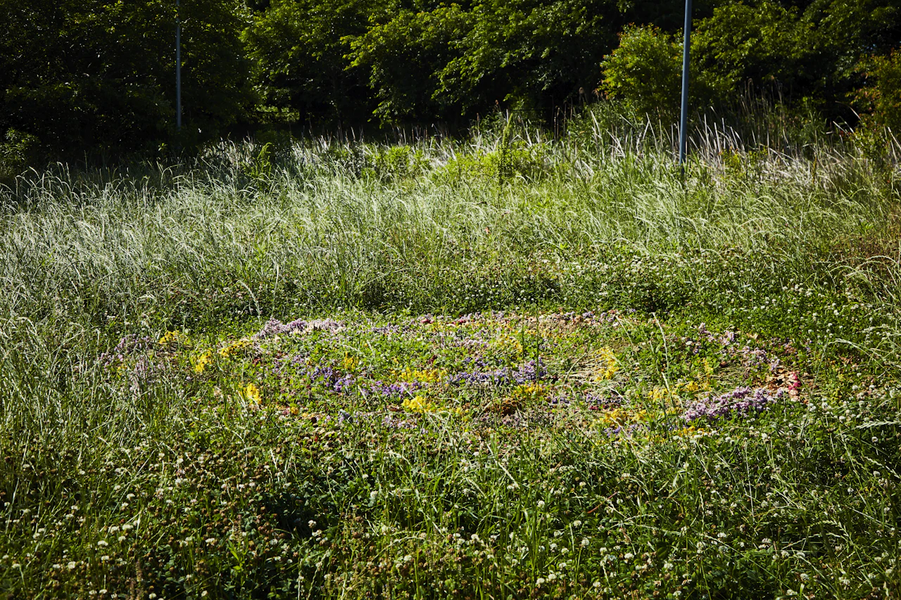 1万本のひまわり、バラ、その他色とりどりの花々によって、青々とした芝生の上に直径2mの輪が制作さてた。太陽、風、雨にさらされたこの屋外ディスプレイは、日ごとに変化し、色が褪せ、円の形が崩れた。2017年5月24日に設置され、その変化を捉えた作品の記録写真によると、6月中旬には、花は草や土と同化するかのように土に還っていた。